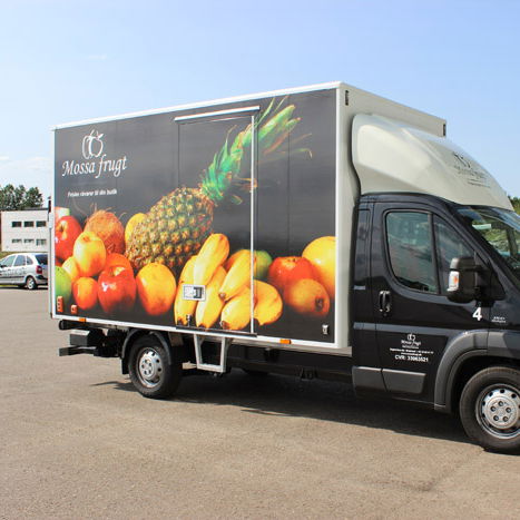 Denna folie med tryck är avsedd för montering på utsidan av bilens fönster eller direkt på lacken. Den används särskilt för företagslogotyper i flera färger på motorhuven eller sidorna av bilen.