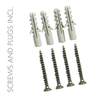 Hörn i gerning. Vit PS-bakplatta samt APET antireflex frontplatta. Inklusive skruvar och plugg för montering.