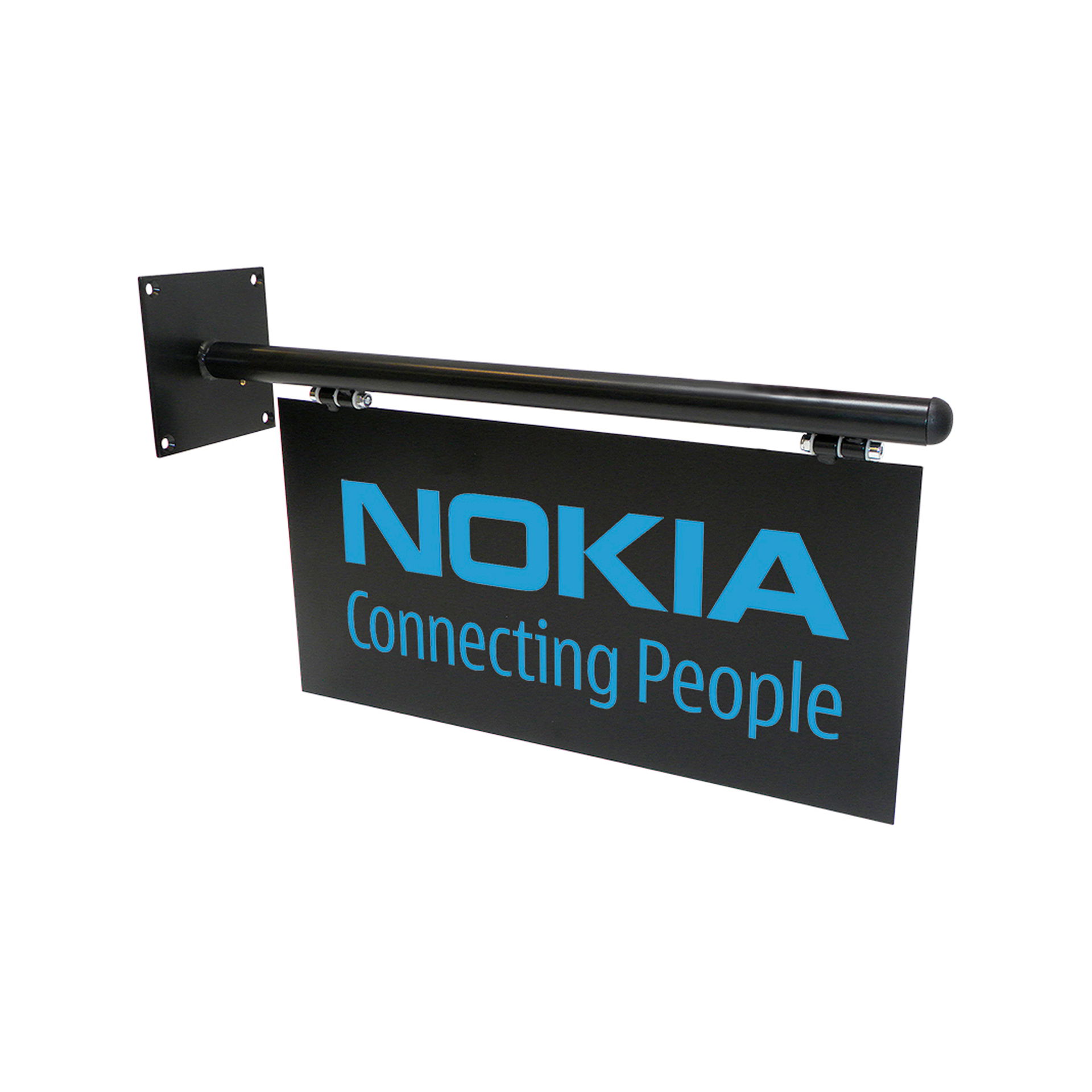 Hängande skyltar är tåliga och består av pulver lackerat stålrör, smidesjärn samt galvaniserade väggfästen. De levereras med skruvar och pluggar, så att det är lätt att montera skylten när du får den.
