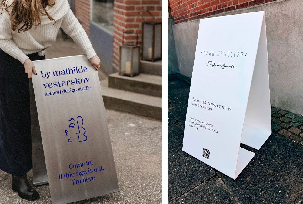 Frank Jewellery och By Mathilde Vesterskov önskade ett mer modernt och stilrent alternativ till våra klassiska gatuskyltar för sina nya butiker.