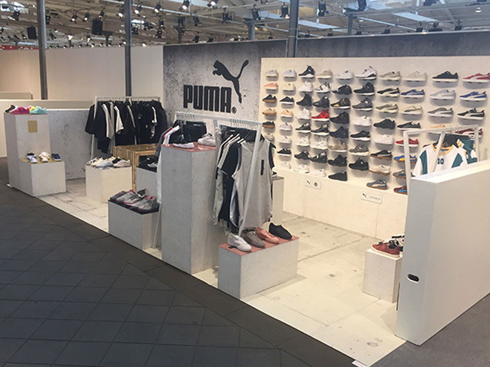 Vi har konceptutvecklat och producerat en komplett mässmonter för Puma samt tagit fram design och grafik i nära samarbete med kunden. Resultatet blev en skräddarsydd monter i råa och stilrena material som presenterar Pumas produkter.