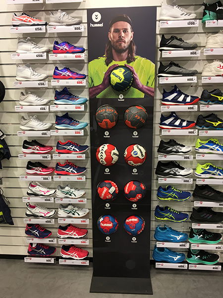 Hummel behövde ett display som kunde öka exponeringen av deras handbollar i sportbutiker. Efter ett inledande samtal med Hummel kom vi fram till följande krav för designen: