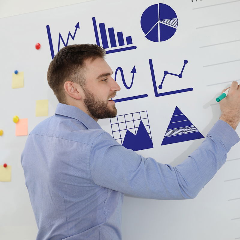 Vårt whiteboard med eget tryck är ett praktiskt och multifunktionellt planeringsverktyg som effektivt hjälper dig att organisera dina uppgifter och mål. Använd vår tavla för att presentera, illustrera och brainstorma idéer i mötesrum, klassrum, på kontoret eller hemma.